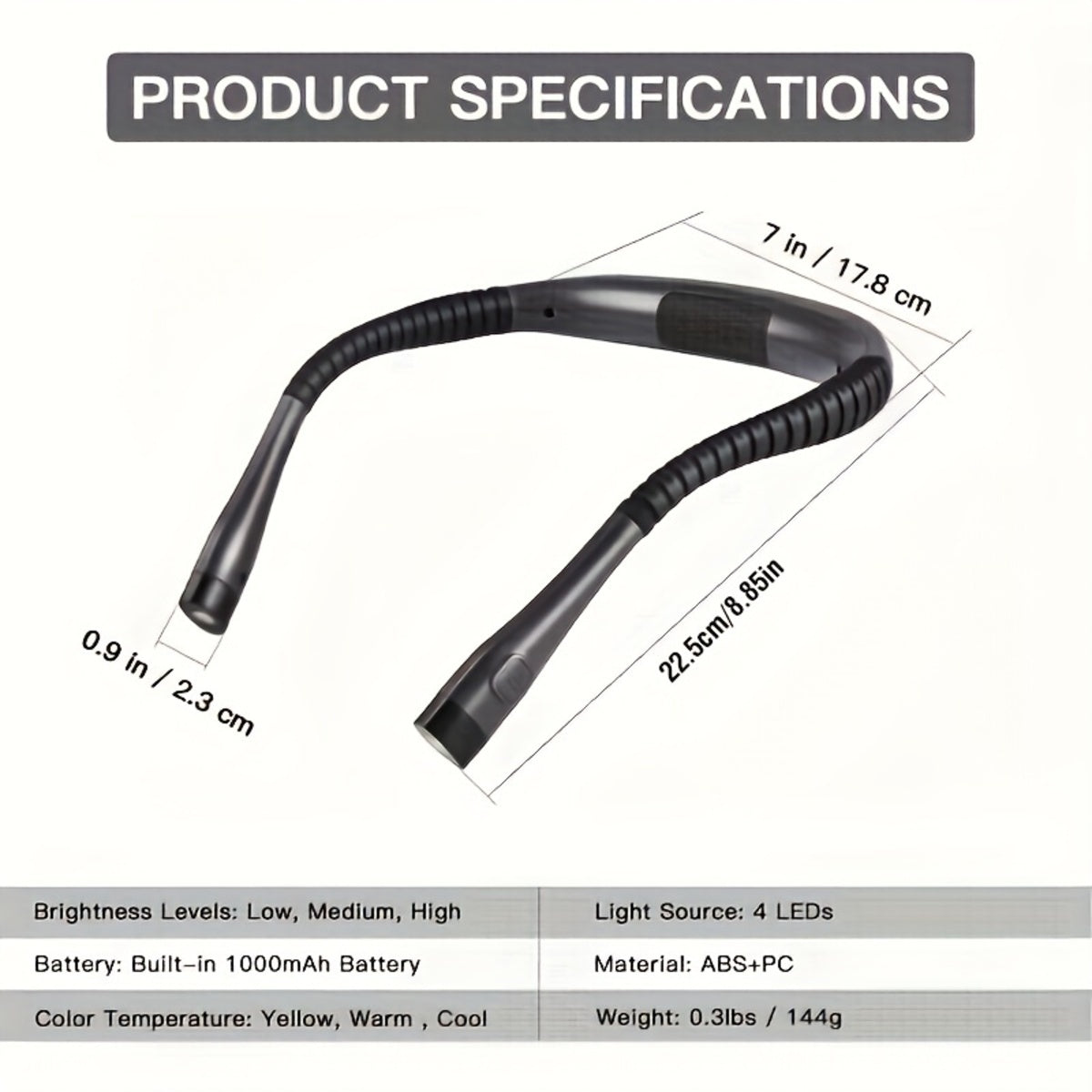 Package Contents : Comes with the neck light, a Type-C USB cable, and a manual for easy setup and use.