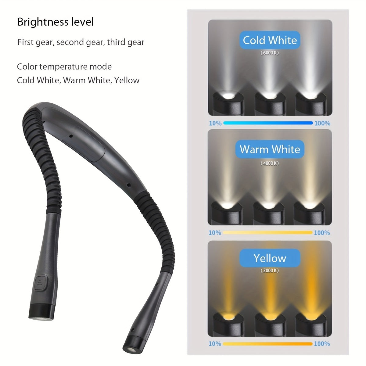 LED Flexi Neck Reading Light Bendable, Rechargeable, Long-Lasting Book Light For Reading In Bed, Knitting, Camping, Repairing, Outdoor Activities